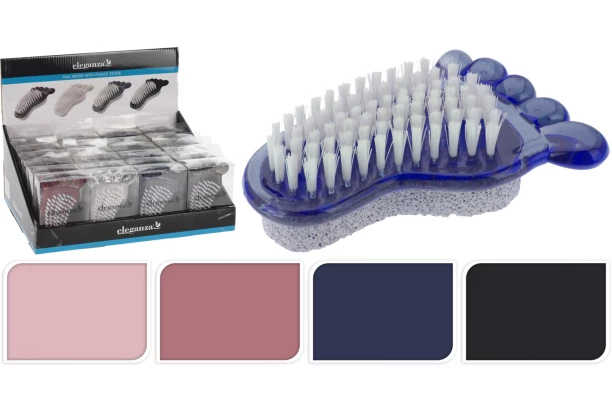 - dvojité funkcie: kefa s jemnými štetinami na dôkladné čistenie nechtov a pemza na odstránenie odumretej kože na pätách a chodidlách