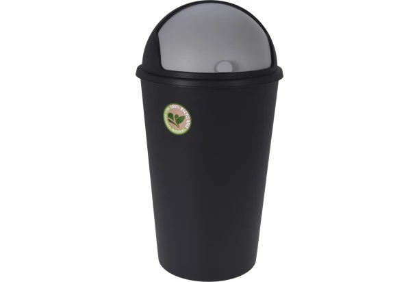 Praktický čierny odpadkový kôš s posuvným vekom je vyrobený z 90% z recyklovaného materiálu a je plne recyklovateľný, čo z neho robí veľmi ekologickú voľbu, ktorá pomáha šetriť prírodné zdroje. S objemom 25 litrov je tento odpadkový kôš vhodný najmä do malých až stredne veľkých miestností.