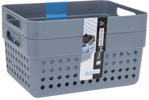 Súprava obsahuje 2 úložné košíky s objemom 1250 ml, dostupné v rôznych farbách. Štýlový a praktický doplnok do domácnosti, ideálny na ukladanie drobností a udržanie poriadku.