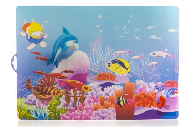 Veselé prestieranie s hravým podmorským motívom spríjemní každé detské stolovanie. Ľahký a odolný plast uľahčuje manipuláciu, zatiaľ čo ľahká umývateľnosť zaisťuje praktické využitie každý deň. Rozmer 43×29 cm.