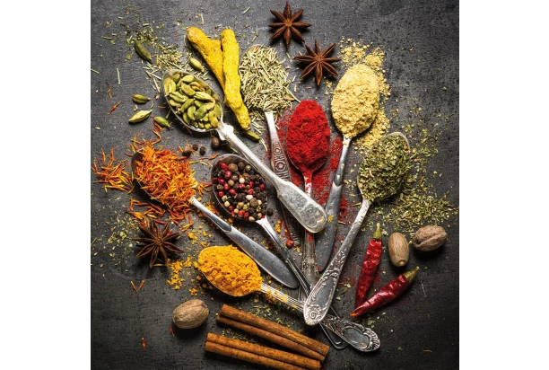 Štvorcový obraz tlačený na plátne o rozmere 35×35 cm s motívom farebného korenia oživí stenu každej kuchyne či jedálne.