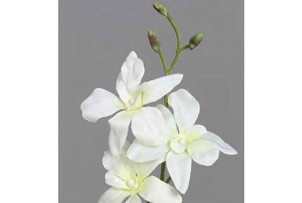 Krémová umelá orchidea vnesie do Vášho domova eleganciu a sviežosť. Precízne spracovanie verne imituje vzhľad kvitnúce kvety a vďaka neutrálnej farbe sa hodí do rôznych štýlov interiérov. Je ideálna ako dekorácia do vázy, či už samostatne alebo ako súčasť kvetinového aranžmánu. Výška 64 cm.