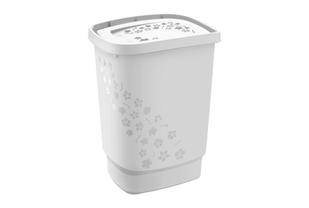 Štýlový kôš na bielizeň v univerzálnej bielej farbe prináša do vašej domácnosti nielen praktické využitie, ale aj dekoratívny prvok. Vďaka elegantnému kvetinovému motívu, kvalitnému spracovaniu a atraktívnej štruktúre s lesklým povrchom sa skvele hodí do spálne, kúpeľne i práčovne. Ponúka objem 55 litrov, ale vďaka štíhlemu tvaru nájde miesto aj v menších priestoroch. Praktické veko je možné používať ako výklopné alebo otočné, čo zvyšuje komfort pri jeho používaní.