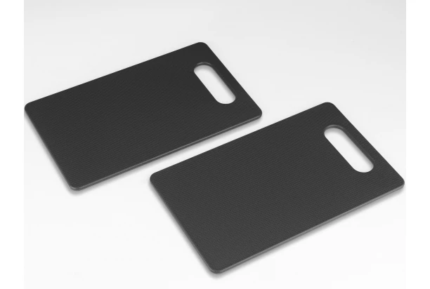 Sada obsahuje 2 praktické krájacie dosky v tmavo šedej farbe, ktoré sa stanú nenahraditeľným pomocníkom v každej kuchyni. Dosky sú vyrobené z odolného plastu, ktorý je šetrný k ostriu nožov a ľahko sa čistí.