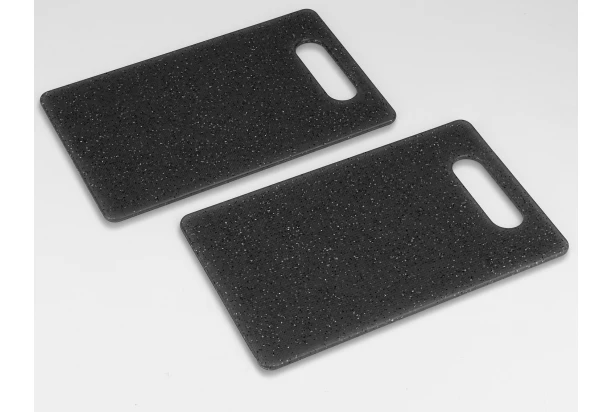Súprava obsahuje 2 praktické krájacie dosky vo vzhľade čierny mramor, ktoré sa stanú nenahraditeľným pomocníkom v každej kuchyni. Dosky sú vyrobené z odolného plastu, ktorý je šetrný k ostriu nožov a ľahko sa čistí.