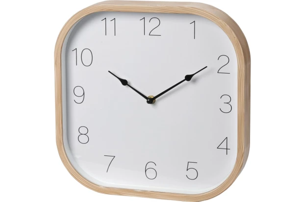 Elegantné nástenné hodiny v modernom prevedení s nádychom klasiky zaujmú svojim štvorcovým tvarom so zaoblenými hranami a rámom v prírodnej imitácii dreva. Vďaka tichému chodu a decentnému dizajnu sa skvele hodia do každej miestnosti. Rozmer 30×30 cm.