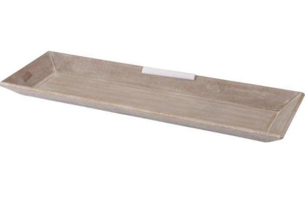 Elegantný drevený podnos s rozmermi 60×20 cm s jemným šedo-bielym náterom sa hodí do moderného aj rustikálneho interiéru. Ideálne na servírovanie nápojov, pochutín alebo ako dekoratívny prvok pre sviečky, kvety a ďalšie drobnosti.