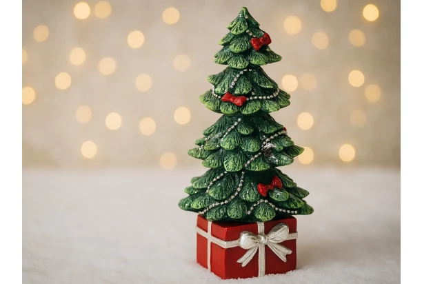 Tradičná dekorácia vianočného stromčeka v zelenej farbe je perfektnou ozdobou pre Váš domov počas zimných sviatkov. Vďaka svojim kompaktným rozmerom 15 cm je ideálny na okenný parapet, krbovú rímsu alebo ako doplnok k ďalším dekoráciám. Stojí na stabilnom podstavci v tvare darčeka s mašľou.
