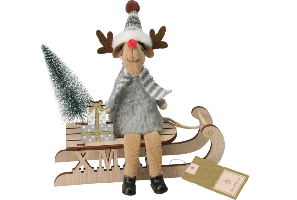 Dekoračná figúrka roztomilého soba so sánkami perfektne doplní vianočnú výzdobu. Vďaka svojej výške 18 cm sa skvele hodí na parapet, krb alebo poličku.