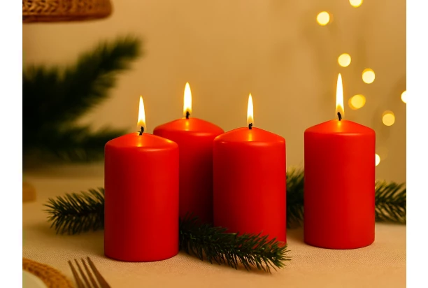 Set valcových sviečok s výškou 10 cm v červenej farbe dodá každému okamihu tú správnu atmosféru.