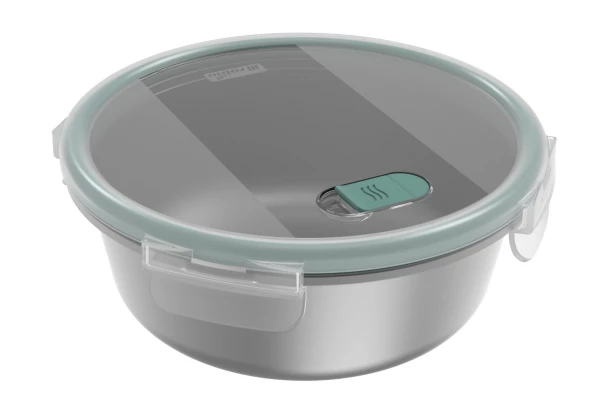 Praktická okrúhla nádoba na potraviny s objemom 1,4 l v elegantnej zelenej farbe je ideálna na skladovanie aj prenášanie jedál. Dóza kombinuje odolné antikorové telo s moderným dizajnom a tesniacim vekom vyrobeným z bioplastu, ktorého biopodiel je pridelený pomocou ISCC masovej bilancie. Vďaka vysokej teplotnej odolnosti nerezovej časti od –20 °C do +400 °C je box ideálny na uchovanie jedla v chladničke, ohrievanie v rúre aj v mikrovlnnej rúre. Celá dóza aj s vekom je vhodná do umývačky, čo zaisťuje jednoduchú a rýchlu údržbu. Kompaktné rozmery 20,4 x8, 2×20, 4 cm a atraktívny dizajn z nej robia perfektné riešenie pre každodenné použitie doma aj na cestách.