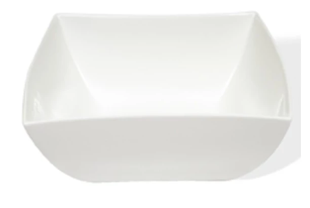 Štvorcová miska 24×24 cm z bieleho porcelánu zaujme svojim zakriveným tvarom a hladkým povrchom.