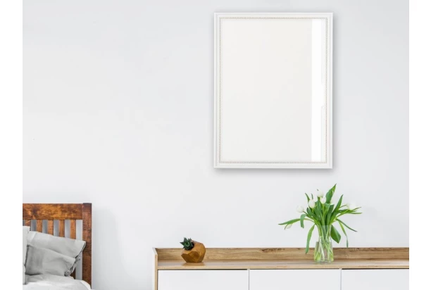 Elegantné nástenné zrkadlo v bielom ráme so zlatým perlovým dekorom je štýlovým aj praktickým doplnkom každého interiéru. Vďaka kompaktnému rozmeru 34×45 cm je ideálne do menších miestností, kam vnesie nádych luxusu.