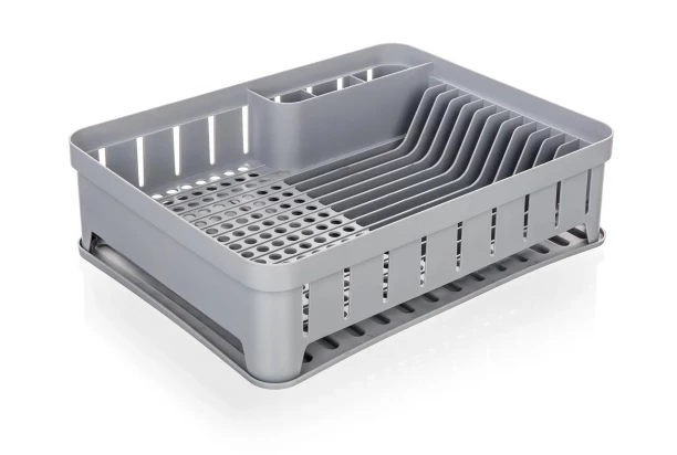 Odkvapkávač myKITCHEN v šedej farbe je praktický pomocník do kuchyne, ktorý zjednoduší sušenie riadu a pomôže udržať pracovnú plochu suchú a organizovanú. Vďaka šikovnému rozdeleniu na sekcie pre príbory, taniere a ostatný riad budete mať všetko vždy dokonale usporiadané. Rozmer 40×31×12 cm.
