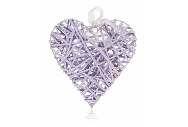 Dekoratívne srdce z prútia vo fialovej farbe o rozmere 28×28 cm vytvorí príjemnú atmosféru domova.