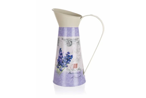 Dekoratívny kovový džbán 13×28 cm s okúzľujúcim levanduľovým motívom prinesie do vášho domova vidiecky šarm a provensálsku eleganciu. Do kanvičky je možné naaranžovať kvety, ale krásne vynikne aj ako samostatná dekorácia.