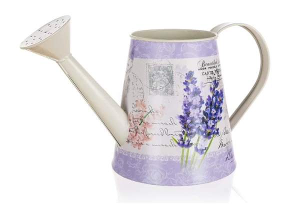 Dekoratívna kovová kanva 13×28 cm s okúzľujúcim levanduľovým motívom prinesie do vášho domova vidiecky šarm a provensálsku eleganciu. Do kanvičky je možné naaranžovať kvety, ale krásne vynikne aj ako samostatná dekorácia.