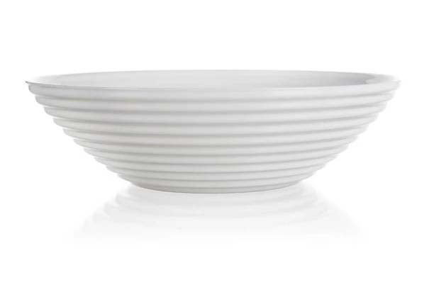 Sklenená hlboká misa s objemom 800 ml v bielej farbe s elegantným reliéfom je ideálna na podávanie polievok.