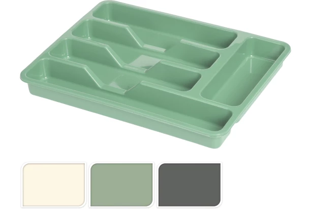 Organizér do kuchynskej zásuvky na príbory je rozdelený na 5 priehradiek a je dodávaný v rôznych farbách. Skvelý doplnok do kuchyne, ktorý v šuplíku udrží poriadok.