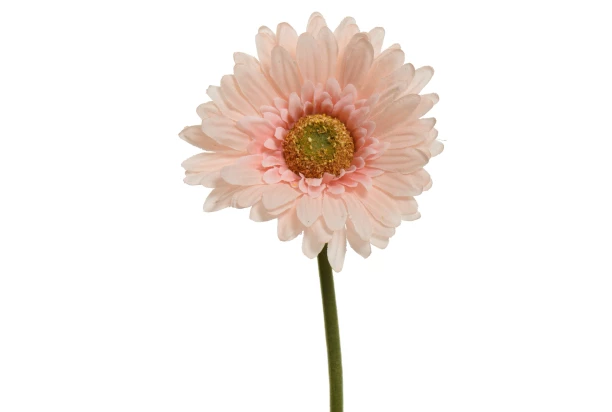 Dekoratívna umelá gerbera v jemnom broskyňovom odtieni dodá miestnosti útulnú atmosféru. Vďaka realistickému prevedeniu skvele vynikne samostatne vo váze aj ako súčasť kytice v kombinácii s vetvičkami. Výška 50 cm.