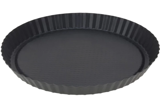 Okrúhla forma na pečenie s vlnitými hranami v čiernej farbe je ideálna na prípravu sladkých i slaných koláčov, quichov a ďalších múčnikov. Vďaka priemeru 28 cm ľahko upečiete aj väčší dezert pre celú rodinu. Špeciálny nepriľnavý teflónový povrch zabraňuje pripaľovaniu a prichyteniu cesta ku dnu aj stenám formy, čo zaisťuje ľahké vyklopenie hotového pokrmu bez poškodenia tvaru.