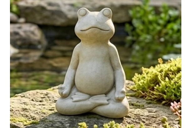 Dekoračná soška v tvare meditujúcej žaby vnesie do vašej záhrady, na terasu alebo k záhradnému jazierku atmosféru úplného pokoja a pohody. Dekorácia je vyrobená z oxidu horečnatého, ktorý je veľmi odolný a verne imituje prírodný kameň. Žaba je dodávaná v 3 rôznych jogových polohách.