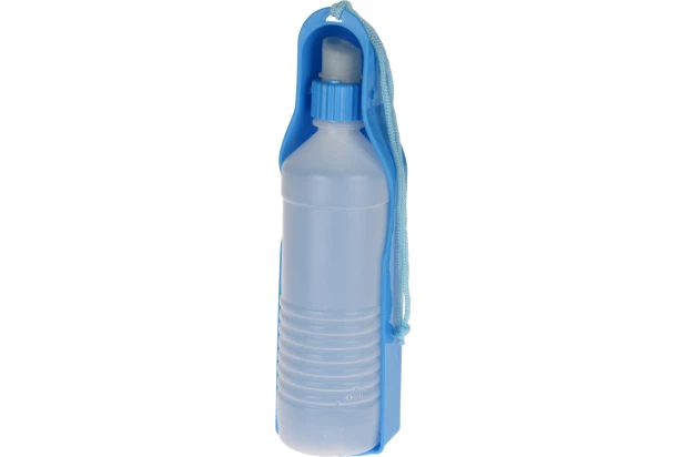 Ľahko prenosná fľaša na vodu s miskou s objemom 450 ml je praktickým doplnkom na prechádzky, výlety aj cestovanie so psom alebo iným domácim miláčikom. Fľaša je vybavená šnúrkou a karabínou pre ľahké prenášanie alebo pripnutie k batohu či vodítku. Dodávané v rôznych farbách.