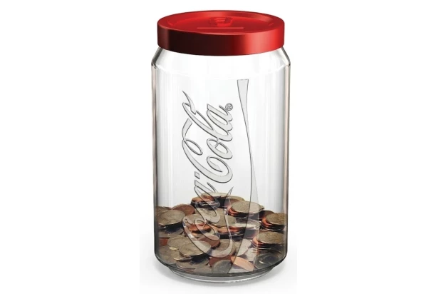 Originálna pokladnička Coca-Cola kombinuje klasický ikonický štýl s praktickým využitím. Robustná sklenená nádoba s červeným vekom a otvorom na mince je ideálna na ukladanie drobných, štýlovú dekoráciu alebo ako darček pre fanúšikov legendárnej značky. Objem 1 liter.