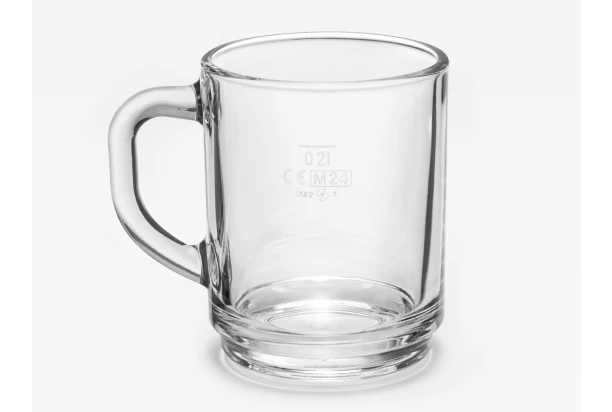 Univerzálny hrnček z tvrdeného skla je ideálny na každodenné použitie. Vďaka svojmu jednoduchému a praktickému designu sa hodí do každej domácnosti. Sklenený materiál umožňuje sledovať obsah hrnčeka a jeho priehľadnosť dodáva nápojom estetický vzhľad. Objem 200 ml.