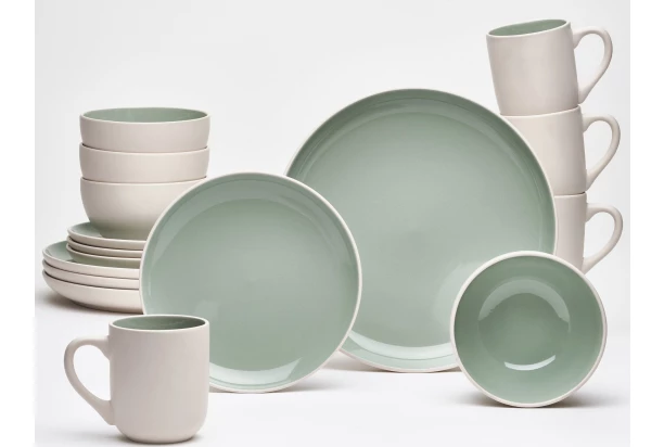 16 dielny jedálenský servis obsahuje všetko potrebné pre každodenné stolovanie aj elegantné prestieranie. Kameninový riad zeleno-béžovej farbe zaujme svojim nadčasovým dizajnom a funkčnosťou. Jedálenská sada je ideálna na raňajky, obed, večeru alebo popoludňajšiu kávu s dezertom a pohodlne poslúži 4 osobám.