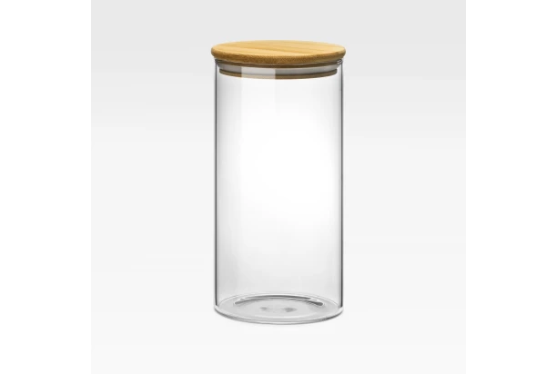 Sklenená úložná nádoba s bambusovým vekom s objemom 1250 ml je ideálna na skladovanie rôznych potravín. Štýlový a praktický pohár ľahko zapadne do každého interiéru a pomáha udržať poriadok v kuchyni.