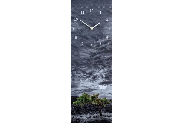 Vertikálne nástenné hodiny 20×60 cm s prírodným motívom osamelého stromu s búrkovými mrakmi sa hodia do modernej obývacej izby, spálne i kuchyne ladenej do prírodných či industriálnych tónov. Hodiny sú nielen praktickým ukazovateľom času, ale aj výraznou dekoráciou, ktorá doplní každý priestor.