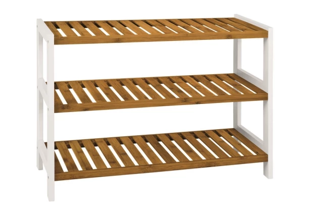 Otvorený botník / regál na topánky obsahuje tri police z bambusového dreva pre útulne pôsobiacu predsieň. Často využívanú obuv tak budete mať vždy prichystanú pri ruke.