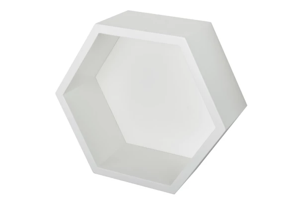 Moderná nástenná polička v bielej farbe v tvare hexagónu pre uloženie drobností alebo dekorácií. Na stene výborne vynikne. Použitím viac kusov vytvoríte zaujímavejší efekt.