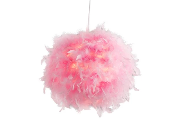 Štýlový luster má tienidlo z imitácie ružového peria a zaujme v každom modernom interiéri. Tienidlo s priemerom 40 cm.