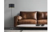 Stojacia lampa ladená v industriálnom štýle s čiernym tienidlom, ktoré je z vnútornej strany doplnené zlatou farbou.