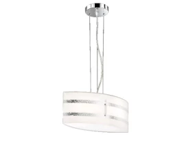 Elegantné stropné osvetlenie zo série Nikosia má sklenené tienidlo o veľkosti 40 cm, ktoré je ozdobené dekoratívnymi striebornými pruhmi so zámernými stopami po roztrhnutí. Stropná lampa sa skvele hodí do kuchyne, jedálne alebo obývačky.