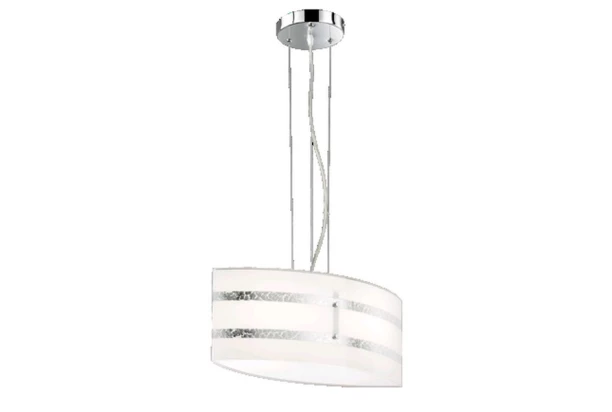 Elegantná stropná lampa so skleneným tienidlom, ktoré má dekoratívne strieborné pruhy so zámernými stopami po roztrhnutí. Skvele sa hodí do kuchyne alebo jedálne.