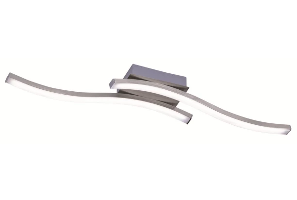 Moderné stropné LED osvetlenie má elegantne zakrivený dizajn v tvare vlnoviek a vďaka technológii LED je veľmi úsporné. Farebná kombinácia matného niklu a bieleho tienidla ľahko zapadne do modernej spálne alebo obývačky.