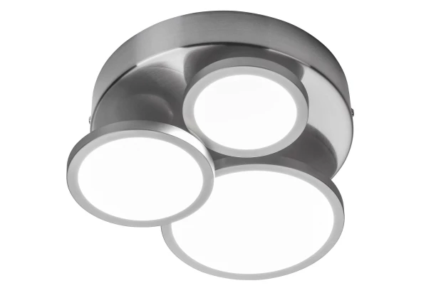 Stmievateľné stropné LED osvetlenie zo série NEO má moderný dizajn kruhov. Svietidlo je vyrobené z kovu v prevedení matný nikel. Poskytuje príjemné svetlo v teplej farbe. Variant s 3 svietidlami.