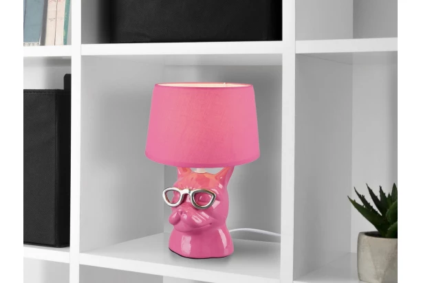 Dekoratívna stolná lampa, neobvyklého vzhľadu s keramickým podstavcom v tvare hlavy psa je ideálnou voľbou nielen pre detskú izbičku, ale i pro stylový moderný interiér. Lampu je možné pohodlne zapnúť a vypnúť pomocou káblového vypínača. Variant v ružovom prevedení.