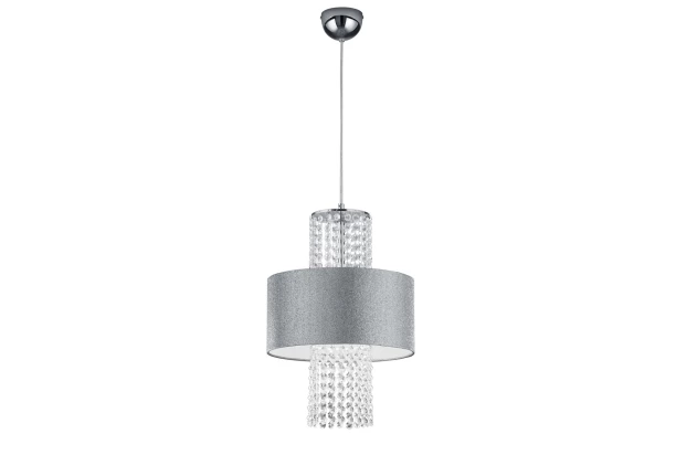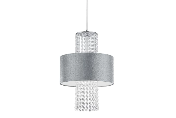 Luxusný luster King sa vyznačuje jedinečným dizajnom, ktorý sa perfektne hodí do elegantne zariadených interiérov. Kombinácia zavesenej imitácie krištáľov a strieborného látkového tienidla dodáva lampe originálny vzhľad. Závesné osvetlenie upúta pozornosť nad jedálenským stolom alebo v priestore obývacej izby, kde poskytne príjemnú svetelnú atmosféru.