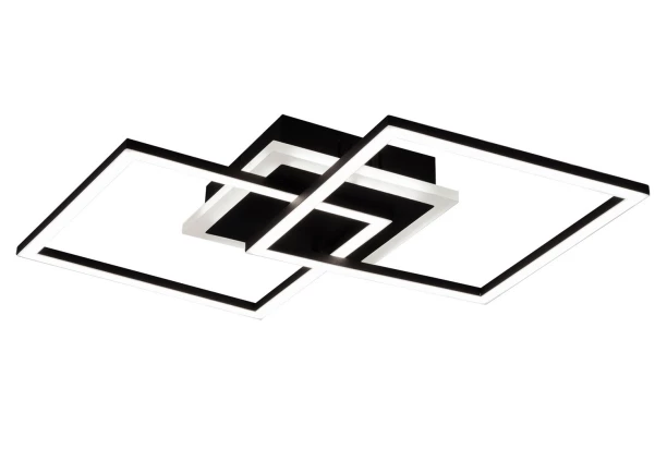 Elegantné LED osvetlenie s kovovými prepojenými štvorcovými rámami v matne čiernej farbe je možné umiestniť na stenu alebo strop. Lampa v modernom neobvyklom dizajne doplní Vašu obývačku alebo akúkoľvek inú miestnosť. Svietidlo môžete plynule stmievať a je navyše vybavené pamäťovou funkciou.
