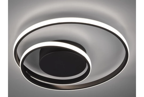 Elegantné stropné alebo aj nástenné LED osvetlenie so zatočenou konštrukciou v matne čiernej farbe vytvára atmosférické a jemné svetelné efekty a dokonale doladí moderne zariadený interiér.