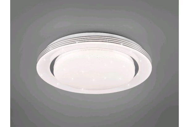 Jednoduché stropné LED osvetlenie zaujme svojimi trblietavými kúskami, ktoré po rozsvietení vytvoria efekt hviezdnej oblohy. Svetlo možno pohodlne vypínať a zapínať pomocou diaľkového ovládača, vďaka ktorému je možné tiež nastaviť požadovanú intenzitu a farbu svetla. Nastavenie svetla sa uloží do pamäte, ktoré sa môže po rozsvietení znovu aktivovať. Svietidlo je vybavené funkciou nočného osvetlenia, a preto poskytuje príjemný jas pre orientáciu v tme.