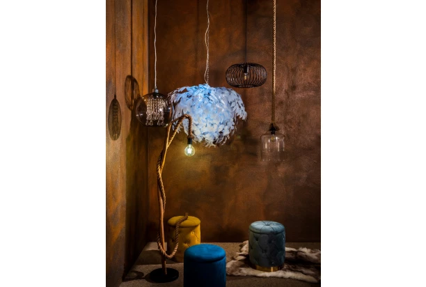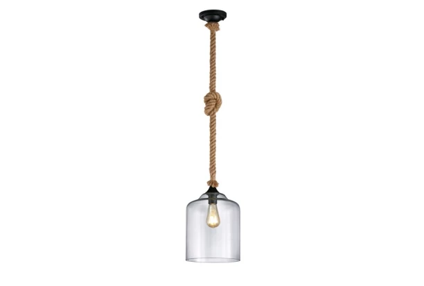 Stropná lampa v prírodnom vidieckom štýle. Sklenené tienidlo a závesné jutové lano zaujme na pohľad v akejkoľvek miestnosti.