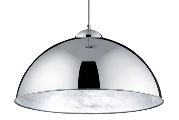 Veľký luster ladený do industriálneho štýlu má chrómovo lesklé kovové tienidlo, ktoré je z vnútornej strany ošetrené náterom so zámernými stopami po SRAM a obrúsení. Dokonale sa tak hodí do štýlovo zariadených interiérov.