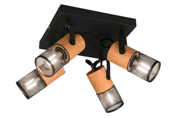 Stropné osvetlenie zo série TOSH má nadčasový a moderný dizajn vďaka kombinácii dreva a kovu v čiernej matnej farbe. Tienidlo so sieťovaným vzorom vytvorí príjemný svetelný efekt v obývacej izbe alebo spálni. Toto 4-bodové osvetlenie je perfektnou voľbou pre industriálnye štýl bývania.