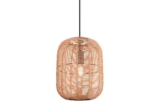Dekoratívne, moderné a veľmi trendy! Závesný stropný luster poskytuje príjemné svetlo a vytvára dekoratívne tiene v miestnosti. Kombinácia matného čierneho kovu a prírodného materiálu, ako je sisal, upúta pozornosť a skvele dotvorí prirodzený, rustikálny interiér. Závesná lampa umiestnená nad stolom v kuchyni, obývacej izbe alebo v predsieni, vytvára útulné prostredie a pozýva na leňošenie.