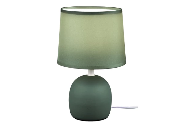 Stolová lampa s keramickou základňou a látkovým tienidlom v zelenej farbe poskytne príjemné osvetlenie nielen v spálni, ale aj v obývacej alebo detskej izbe.